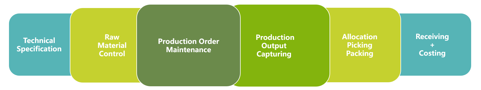 ODS production process generates production order from sales orders and optimizes the production processes that cover raw material control, production output, order allocation, picking, packing, receiving, and costing. The Production module in ERP integrates with APS and MES to ensure the delivery of quality products on time.